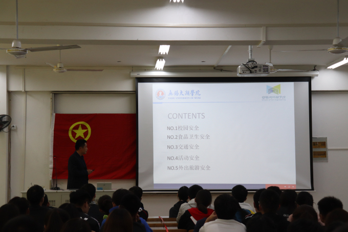 沈峰副书记首先向同学们强调要明确安全教育的目标性,即通过安全教育,让全院师生能充分认识到安全教育的重要性,大学生在平时的生活和学习中要有自我安全意识。接着他从学生日常生活的五个方面阐述安全的重要性和注意要点:第一点要注意校园安全,要养成日常良好行为习惯,如上下楼梯不要看手机,上下课拥挤路段不要戴耳机等,要注意用电安全,严格遵守校园及宿舍安全用电的相关制度;第二点要注意食品卫生安全,要注意饮食安全,尽量到食堂用餐等;第三点要注意交通安全,沈峰副书记提醒同学们不管在校内还是校外要注意交通安全,要遵守交通规则,不要乘坐非法运营的车辆;第四点要注意活动安全,提高安全防范意识,树立理性消费观念,自觉远离网络借贷行为,规避盲目消费风险;最后一点要注意外出旅游安全。通过这五个方面让大家了解到平时生活中最常见的安全问题,也知道了如何去应对的建议和措施。