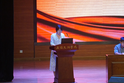 接着,我院黄文翠副教授对新生们提出了大学生应如何在大学中学习生活的期望。黄副教授说道作为一名大学生,应学会自主学习,独立思考,做好学习的规划并制定目标,学会对自我管理。不仅要坚定信念学好专业知识,而且要多进行实践活动,将知识与实践相结合,培养起自身对专业的兴趣。黄教授也希望新生们拥有健康的心理和健全的人格,并鼓励新生保持初心,以饱满的姿态迎接接下来的大学生活。