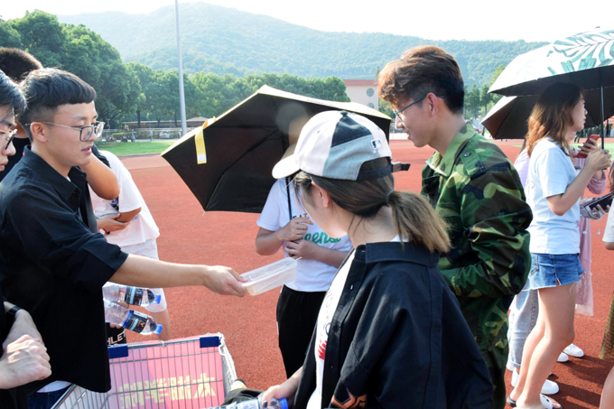 为了给萌新们送来这军训的一份清凉,艺术学院分团委的小伙伴们给军训新生送去活力支援,递一瓶水,一份水果,是太湖对军训新生满满的关爱与支持!
