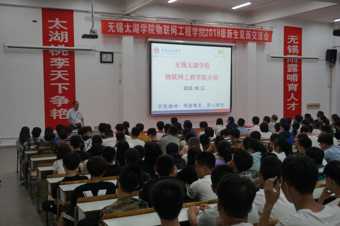 9月11日晚六点,物联网工程学院新生见面交流会在7号楼102隆重举行,欢迎来自五湖四海的四百多名新生。物联网工程学院院长惠晶,副院长方宁生、李莎,党总支副书记沈峰,各专业负责人,学工秘书,2018级专业班主任,2018级辅导员, 2018级本科新生参加了本次交流会。