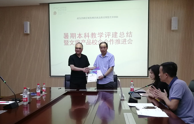 会上双方就通过跨专业课程设计、工作室项目教学等多层次校企合作方式深入开展有关旅游文创产教融合项目合作进行了探讨交流,并对后续进一步开设鼎艺国际“城市游礼”文创校园展厅达成了初步意向;会上艺术学院与鼎艺国际举行了校企合作签约仪式和校企合作实习实训基地揭牌仪式。