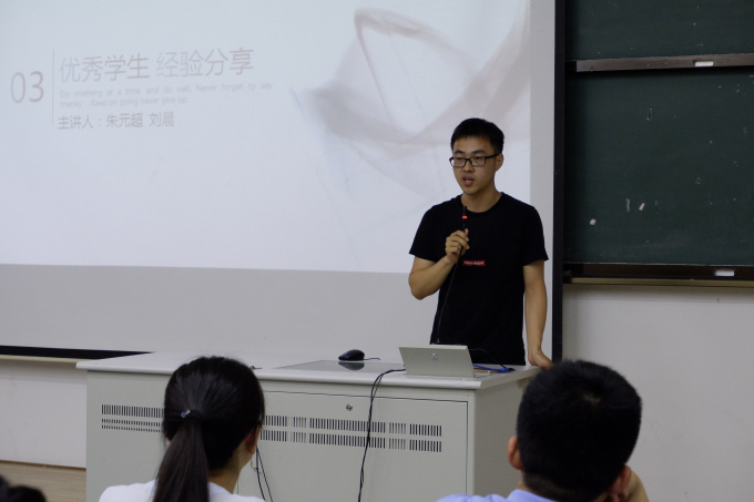 随后,2018年考取研究生的代表朱元超、刘晨上台分享考研经验。两位学长均表示在考研的路上要有坚定的信念,勤奋努力,善于和研友分享交流。考研是否辛苦在于自己,没有付出何来回报呢?