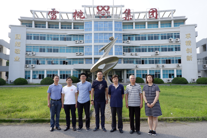 6月14日下午,机电工程学院袁惠新院长、刘国栋副院长、杨敏副院长、杨学圣副书记、机械电子工程系主任陈炎冬、杨汉嵩教授和辅导员佘子骞一行七人来到无锡雪桃集团有限公司实地考察,洽谈校企合作事宜。公司副董事长张华和人事经理、研发经理、生产经理等热情接待了大家。