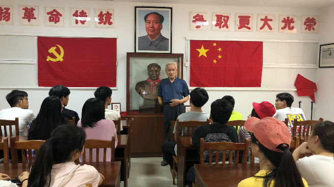 活动开始,学员们首先有序的参观了教育基地的陈列室。陈列室虽然不大,但却毫无疑问的承载了吴老六十几年来的心血与信仰。须知那些珍贵的材料,无一不是吴老亲手整理或是远途收集而来。而后,大家终于见到了年近九旬却依然精神饱满充满着热情的老人——吴成。而在看到老人右臂的残缺后,所有学员无不肃然起敬。