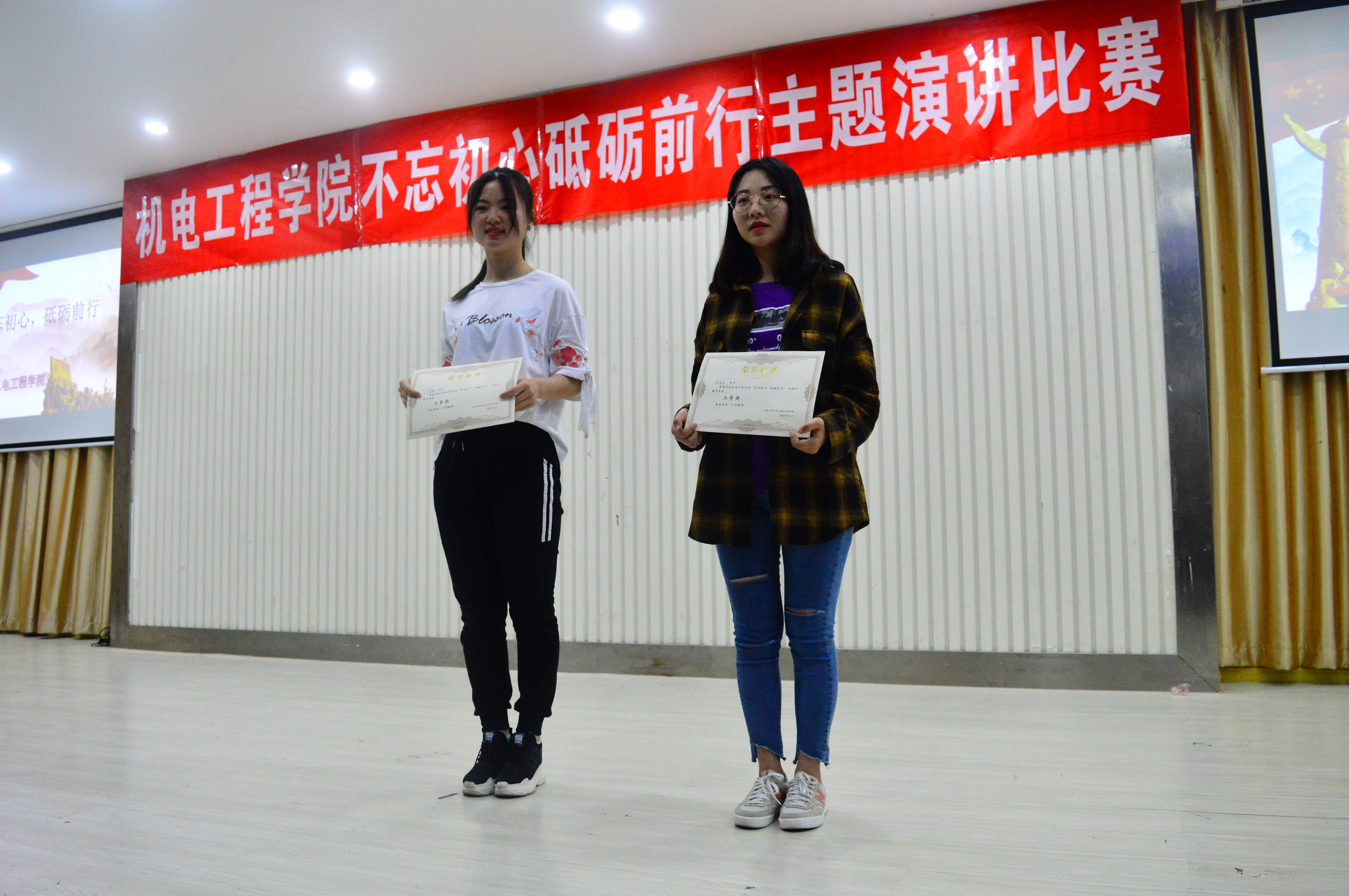 为丰富学生校园文化生活,紧跟十九大的热潮,创造和谐、奋进、创新的良好氛围,在全院形成一种人人学习先进、崇尚先进、争当先进的良好局面,把创先争优活动真正落到实处,机电工程学院于2018年5月9日晚在大学生活动中心举办了“不忘初心、砥砺前行”主题演讲比赛。本次比赛由机电工程学院分团委书记许心怡老师主持,机电工程学院实验室主任姜斯平教授、学工秘书邓珂老师、辅导员明耀堃老师作为评委也参加了这次活动。