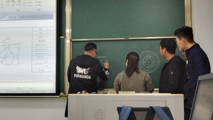 为了积极贯彻学校教学改革精神,推动学院课堂教学改革,调动学生学习积极性,学院积极鼓励教师钻研教学方法。本学期机械工程系俞萍老师在《工程制图A2》课程第八章标准件和齿轮中采用翻转课堂的形式给机械专业2017级各个班级上课。翻转课堂式教学模式,是指学生在课堂以外完成知识的学习,而课堂变成了老师学生之间和学生与学生之间互动的场所,包括答疑解惑、知识的运用等,从而达到更好的教育效果。