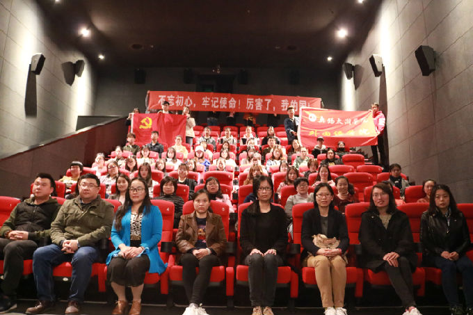 为深入推进“不忘初心,牢记使命”的十九大精神,同时丰富学生们的精神文化生活,2018年4月8日12:50,外国语学院党总支组织教师党支部和学生党支部以及各班班长、团支书共同前往百乐广场CGV影院参加《厉害了,我的国!》纪录片观影活动。