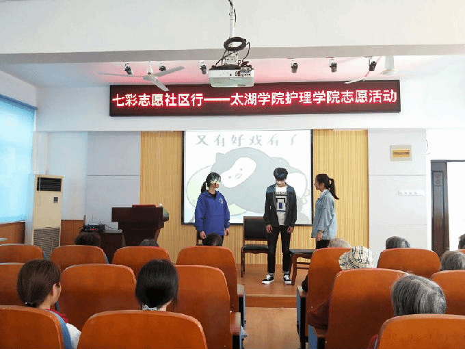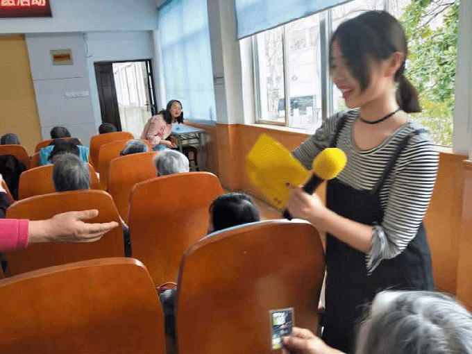 随后是由邱雅雯,邓尘玉,邢中文三位同学带来的精彩小品《环保不忽悠》。绘声绘色的小品博得了场下阵阵掌声。我们不仅看到同学们卖力的表演更能体味努力背后呼唤环保的热切。更重要的是同学们希望用幽默诙谐的小品给这些老人们带去欢声笑语,感受一丝温暖和关怀。