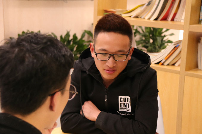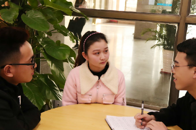 艺术学院小记者在对“孔德扬教授包装设计工作坊”的优秀学员代表穆凤娇、范成好进行采访
