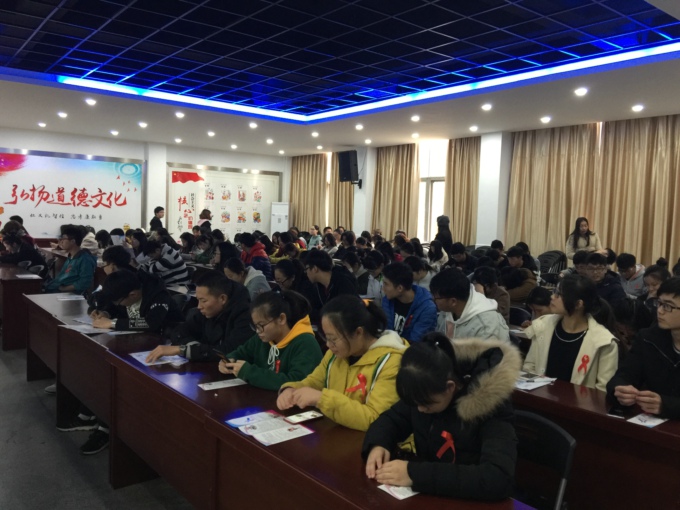 2017年11月29日周三下午,邀请无锡市红十字会、无锡市红丝带关爱中心、无锡市第五人民医院医护专家走进校园,在校大学生活动中心进行主题为“携手抗艾,重在预防”的宣讲活动,全校各学院150余名学生参加活动。
