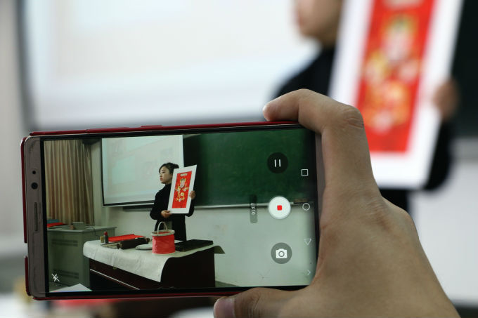 纸马传承人陶晓梦于艺术学院录制《非遗文化纸马》视频