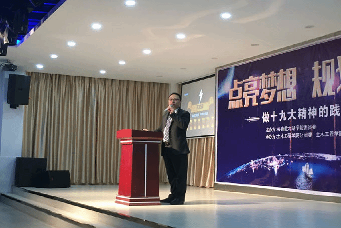转眼间已经学期过半,17级的同学们已经渐渐熟悉了即将生活学习四年的校园。为让同学们在未来的学习过程中有明确的方向,对于自己的未来有明确的规划,土木工程学院特地邀请了高桥检测科技有限公司副总经理张晓东作主题为《点亮梦想,规划未来》的职业生涯规划讲座。