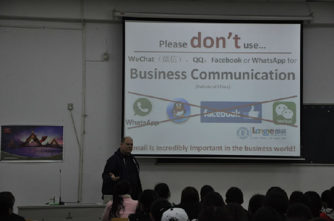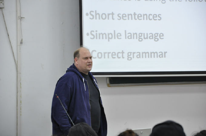 11月23日9(周四)下午1:30,在6号楼122教室,老马做了一场关于Business English日常使用技巧的演讲。