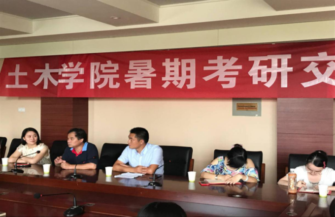 本网讯 土木工程学院于7月26日上午10:00在 六号楼会议室举办了土木学院暑期考研交流会。会议邀请外国语学院吴旻昊副院长、基础部李广玉、李双瑞老师以及学院的专业教师,为暑期在校考研学生的学习和生活等各方面予以针对性的指导和帮助。