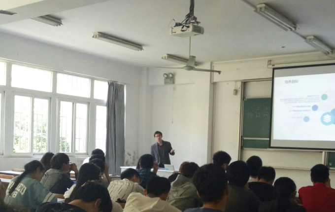 本网讯 5月11日下午,物联网工程学院在7号楼118举行《物联网专业课程体系介绍》专题讲座,苏微软件开发高级项目经理彭宗山担任主讲人,物联网学院副院长方宁生、教学秘书姚湘、物联网工程专业(嵌入式培养)辅导员马彪和物联网工程专业(嵌入式培养)全体学生参加此次讲座。