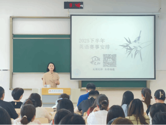 吴旻昊副院长介绍了2025年下半年学科竞赛与科研项目申报工作计划,鼓励教师积极指导学生参与高水平英语竞赛,加强纵向与横向课题申报,拓展校企合作资源,进一步促进毕业生就业质量和留锡比例提升。