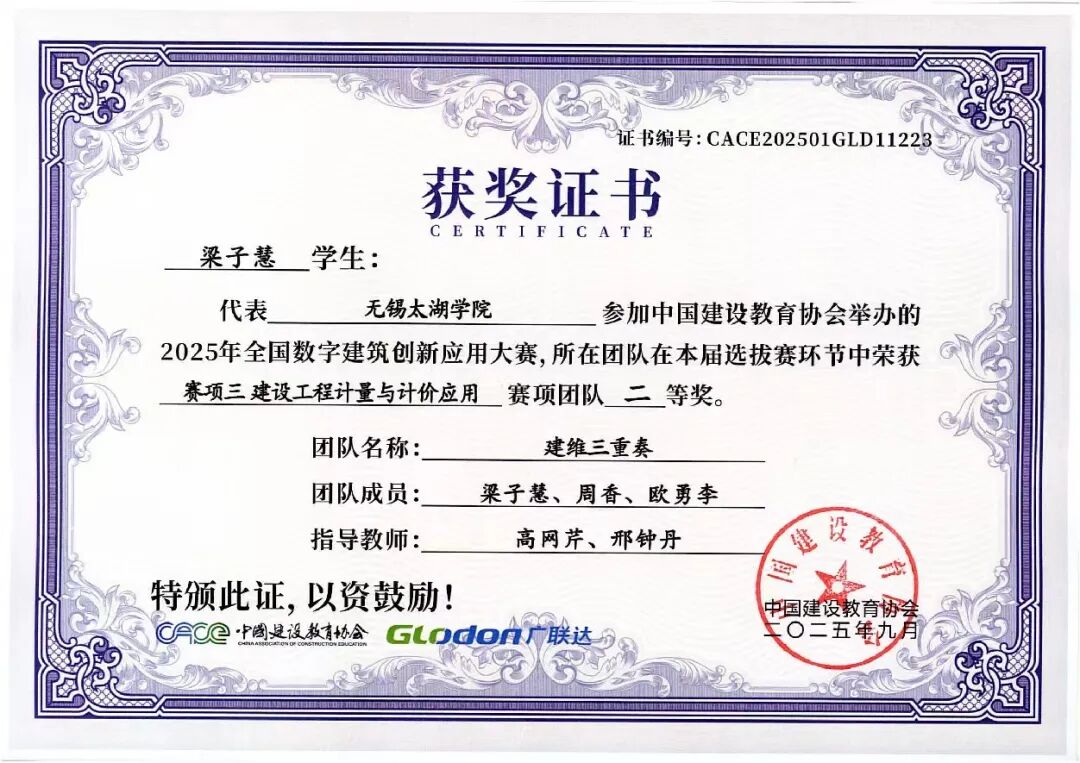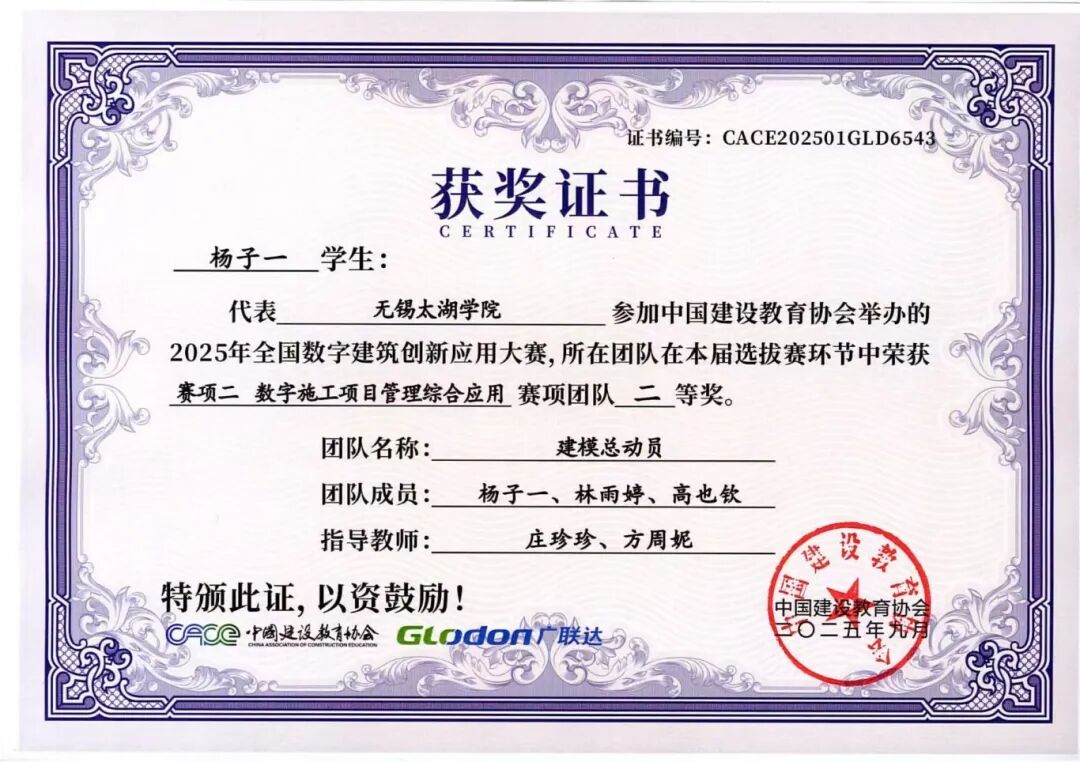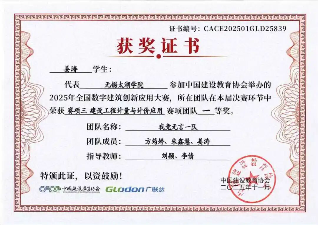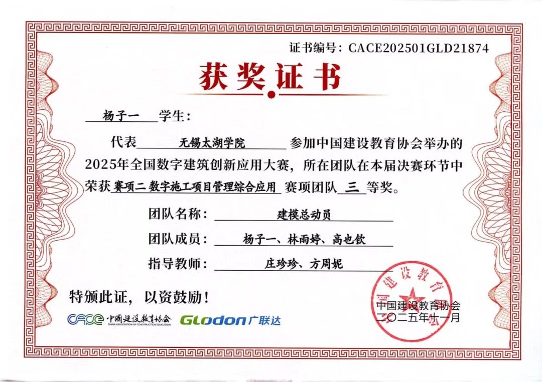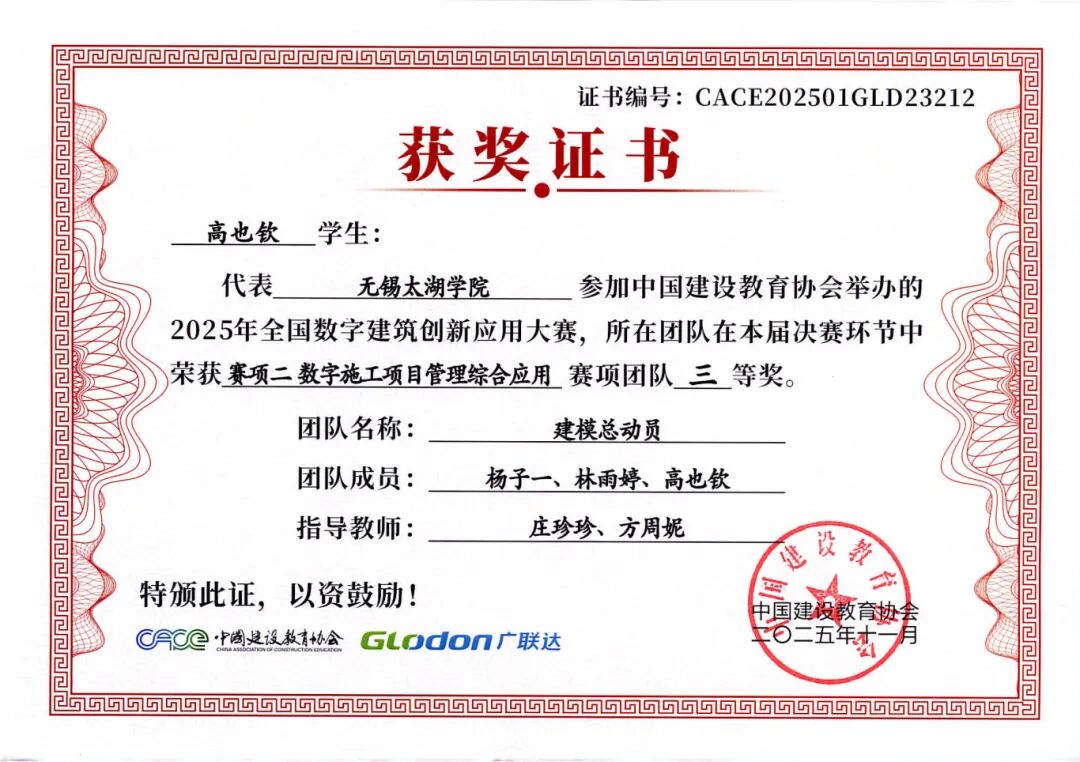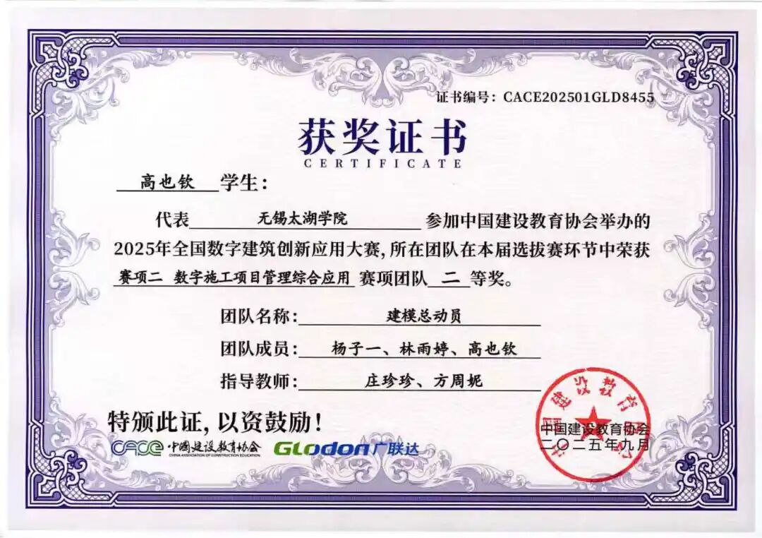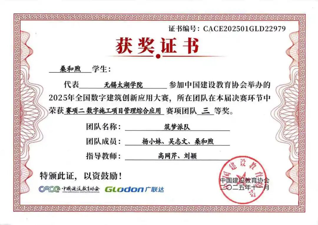 融合本届大赛秉承“以赛促教、以赛促学、以赛促创”的理念,不仅全面检验了智能建造学院学子的专业能力、创新意识与团队精神,也充分展示了学院在数字建筑人才培养和产教融合教学改革方面的丰硕成果。学院通过系统组织学生参赛,将竞赛内容与课程教学有机融合,有效推动了教学改革与实践创新,为建筑行业数字化转型培养了一批具备实战能力的复合型人才。学子们的卓越表现,也为中国数字建筑行业的创新发展注入了青春活力。