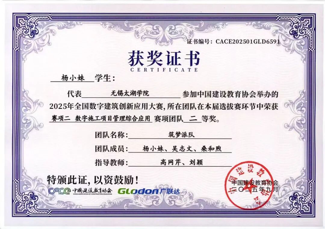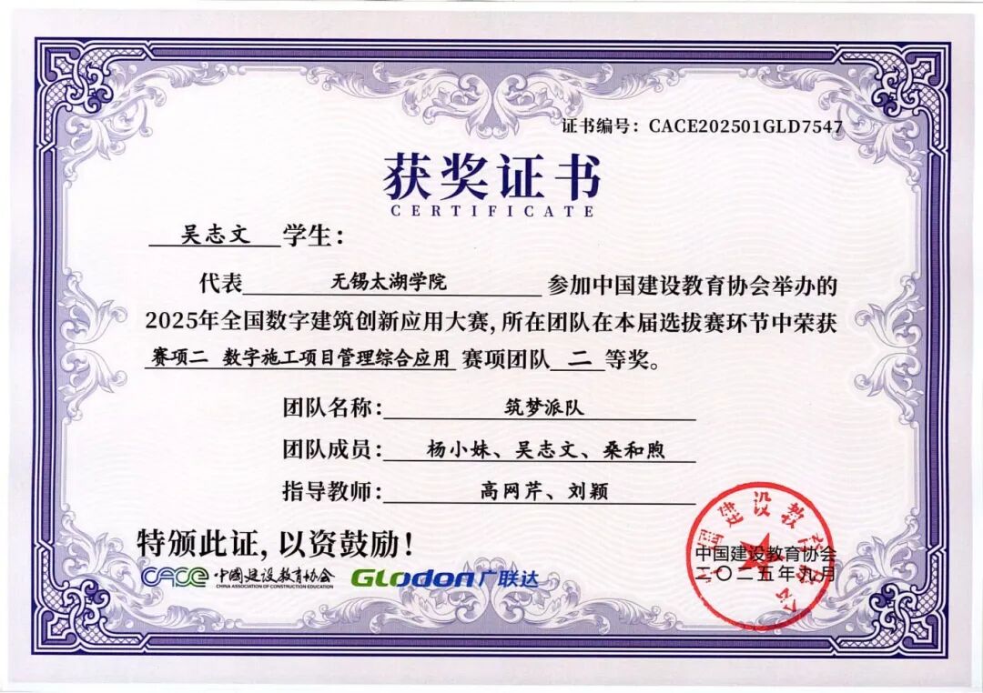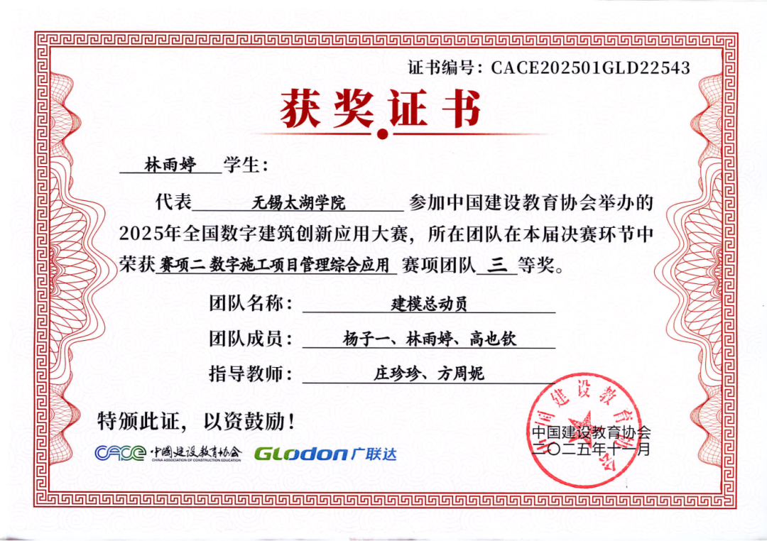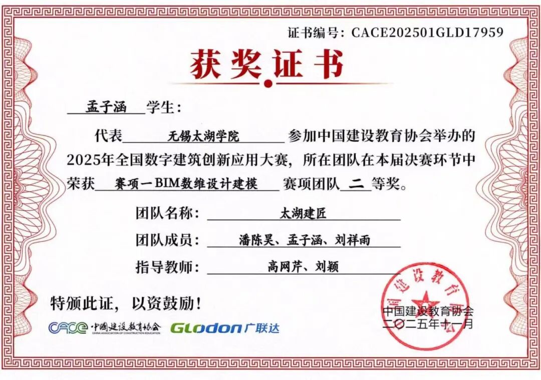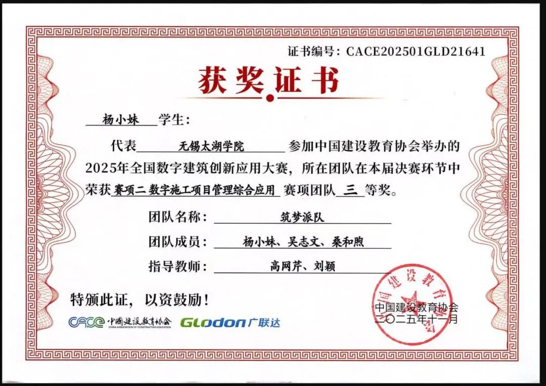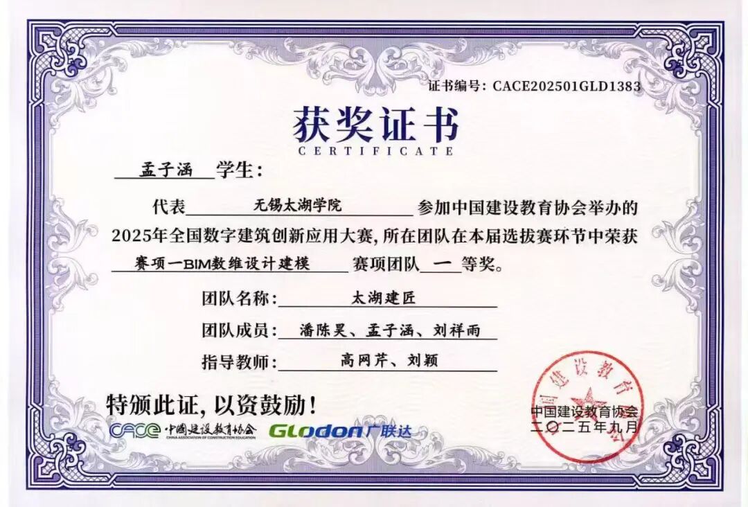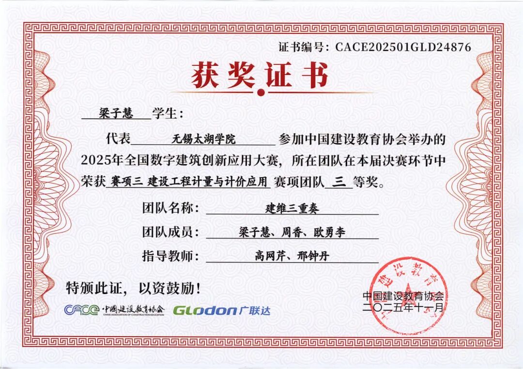 融合本届大赛秉承“以赛促教、以赛促学、以赛促创”的理念,不仅全面检验了智能建造学院学子的专业能力、创新意识与团队精神,也充分展示了学院在数字建筑人才培养和产教融合教学改革方面的丰硕成果。学院通过系统组织学生参赛,将竞赛内容与课程教学有机融合,有效推动了教学改革与实践创新,为建筑行业数字化转型培养了一批具备实战能力的复合型人才。学子们的卓越表现,也为中国数字建筑行业的创新发展注入了青春活力。