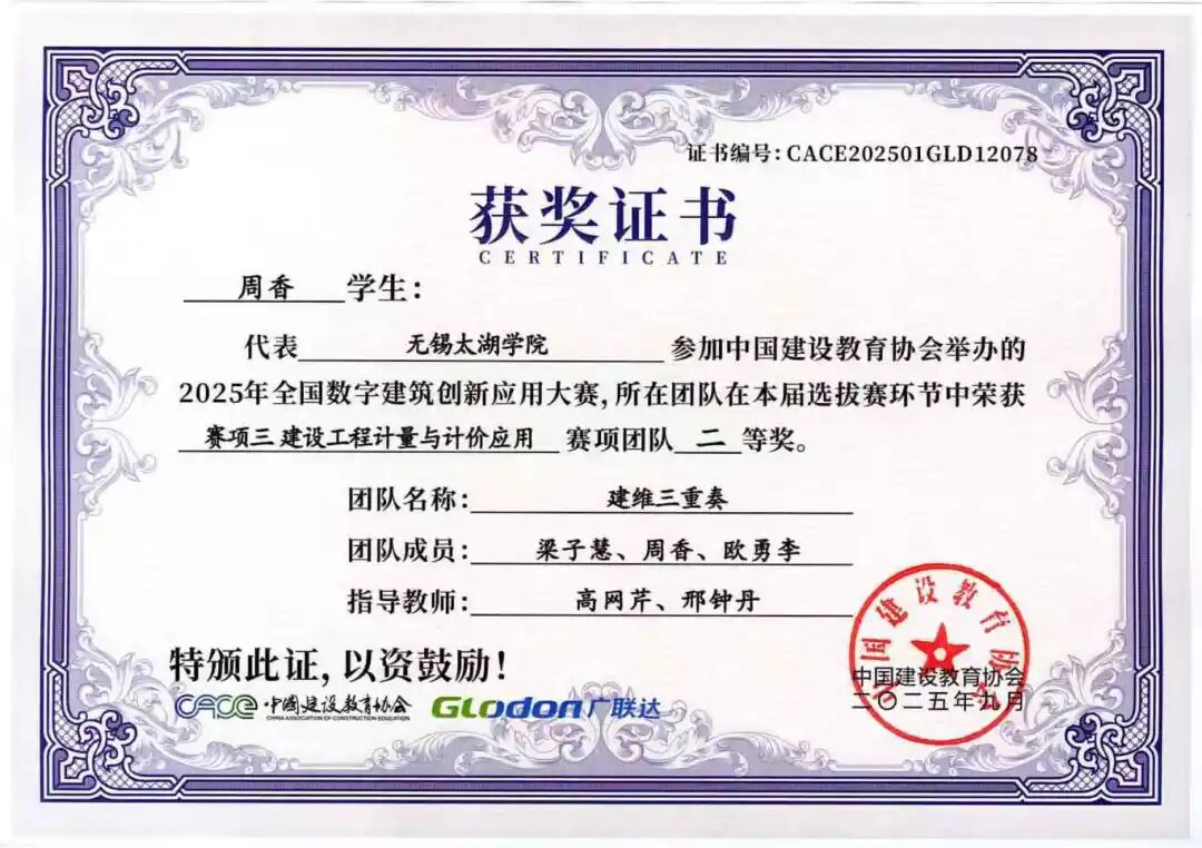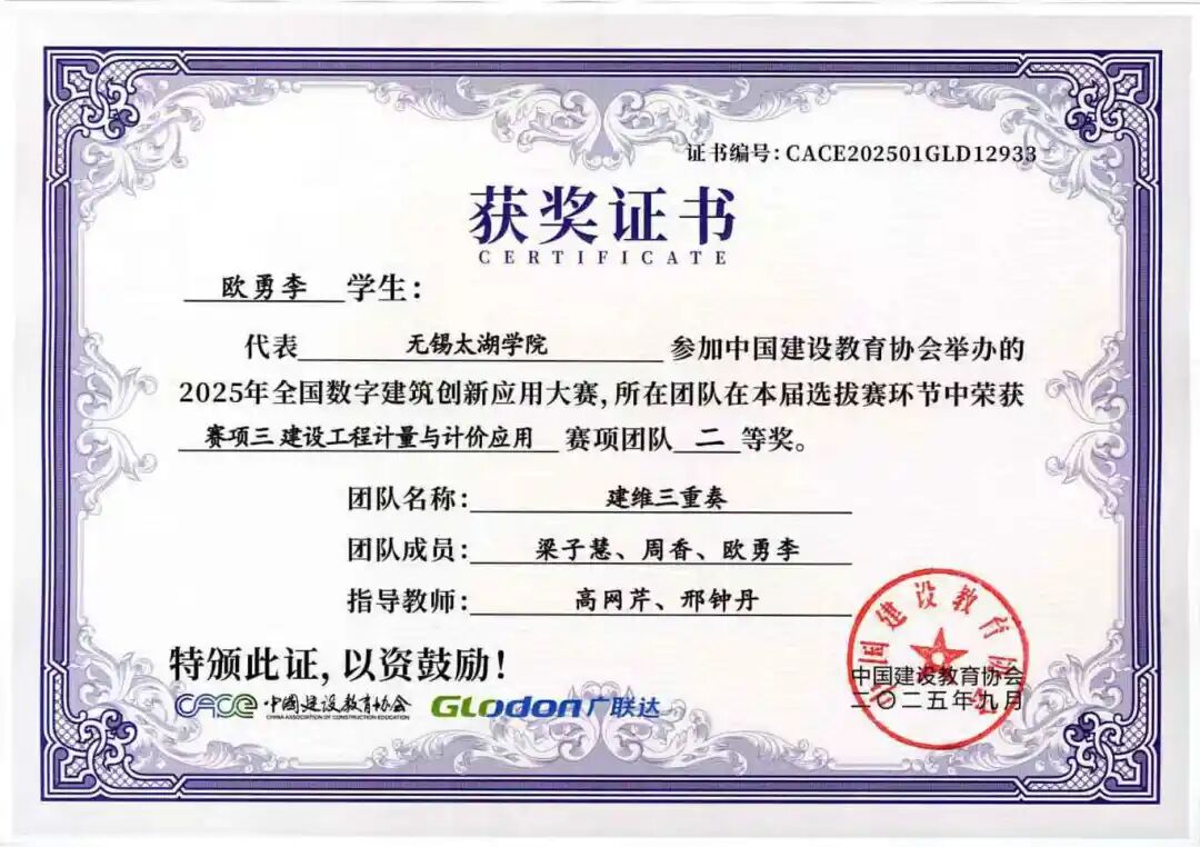 谨向所有获奖团队及指导老师表示热烈祝贺!期待智能建造学院学子以此大赛为新起点,持续深耕数字建筑技术,不断提升实践能力,未来成长为建筑数字化领域的中坚力量。学院也将继续完善人才培养体系,为智能建造产业输送更多优秀人才,助力我国建筑行业数字化转型升级不断迈向新高度!