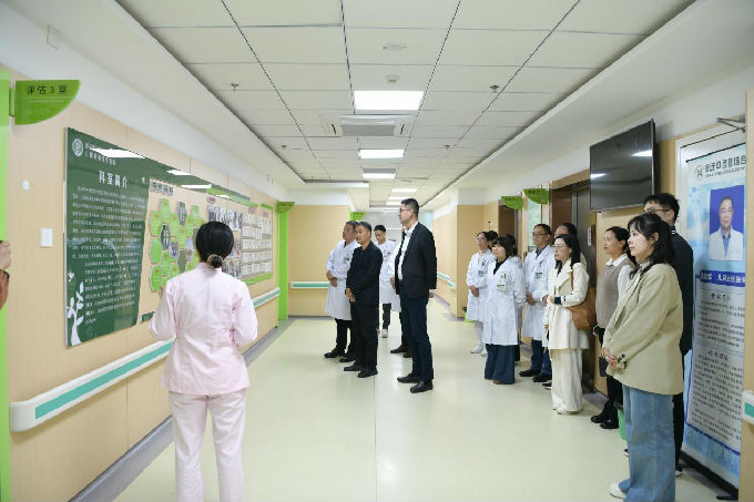 同日下午,代表团访问宿迁中西医结合医院。在王健院长陪同下,参观了医院科室及特色诊疗中心。座谈会上,王健介绍了医院基本情况与发展规划,宋绍征分享了学院在人才培养与专业建设方面的创新举措。胡宇与李辉副院长分别代表双方签署合作协议,宋绍征与王健为合作基地揭牌。双方围绕学生实习、就业推荐、师资交流等议题深入洽谈,达成多项共识,进一步拓宽了毕业生就业与实践渠道。