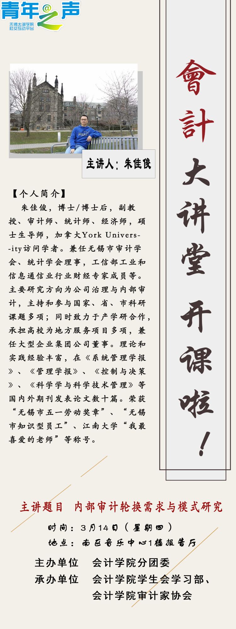 为了帮助学生更好的了解职场问题和职场法律,12月28日下午,无锡市司法局普法讲座在大学生活动中心A顺利开展。本次讲座由律师陈波主讲,文法学院党总支副书记俞昊波与文法学院法学系师生共同参与,沉浸式汲取职场法律知识与成长经验。...