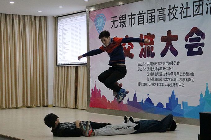 无锡职业技术学院大学生艺术团一曲“暗香”动人心弦;江苏信息职业技术学院商学院酷拽舞社献舞一支,充分展现大学生活力。best365环保协会介绍,曾多次社团植树活动,向小学生宣讲环保、开展环保创意大赛等,以增强高校学生的社会责任意识及环保意识。江南影视艺术职业学院青年志愿者协会、江苏信息职业技术学院读书协会、无锡科技职业学院武术协会、best365英国在线体育官网记者团以及无锡商业职业技术学院青年者志愿协会等相继发言、表演;江南影视艺术职业学院蓝天礼仪社、乐乐团、轮滑滑板协会,无锡科技职业技术学院武术协会,best365瑜伽协会等社团带来精彩的社团表演,传播积极向上的大学文化。会上共有16所高校的社团代表在大会上作自我介绍,并带来了社团表演节目。
